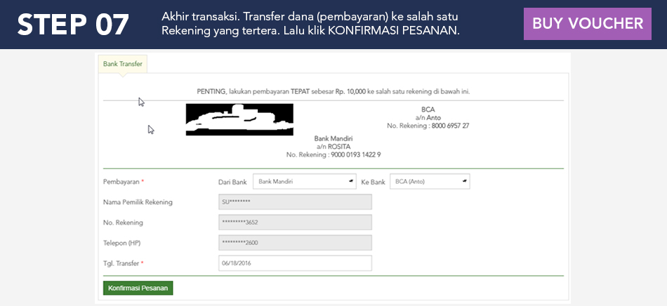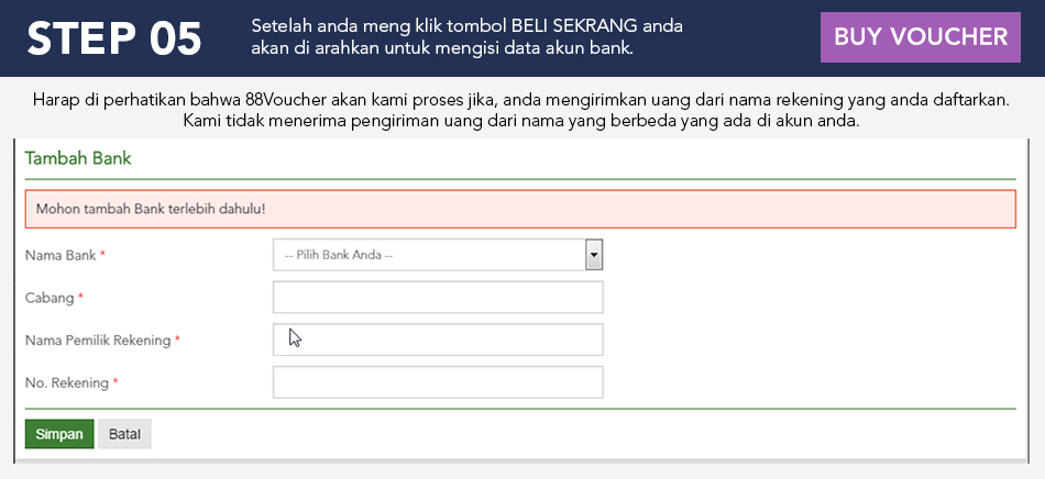 Setelah anda meng klik tombol BELI SEKARANG anda akan di arahkan untuk mengisi data akun bank.