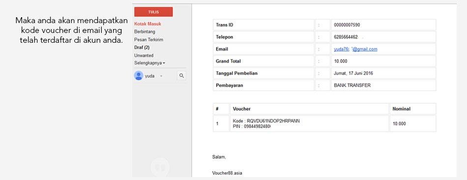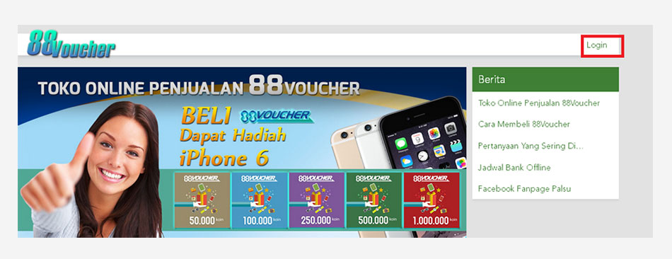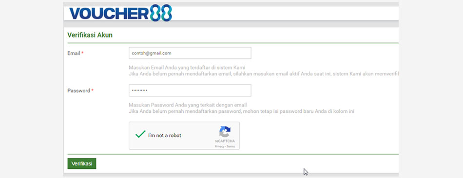 Masukkan Email dan Password. Pastikan email anda aktif, karena Seluruh transaksi di 88voucher menggunakan Email.