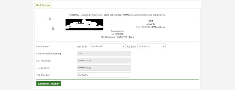 Akhir transaksi. Transfer dana (pembayaran) ke salah satu Rekening yang tertera. Lalu klik KONFIRMASI PESANAN.